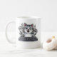 Mug Mischievous Cartoon Cat at Keyboard