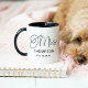 Moderne et décontractée, la tasse de café de mariage pour femmes avec calligraphie noire "Mme" comporte un texte personnalisé qui peut être personnalisé avec le nouveau nom de famille marié de la mariée et la date du mariage / date établie. Fait un cadeau parfait pour la mariée nouvellement mariée !