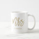 Cette tasse simple et élégante dit "Mrs" dans la typographie à la mode de l'écriture faux or, et a également une place pour votre nouveau nom de famille.