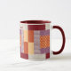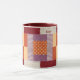 Tasse colorée à motif de bloc de patchwork dans le motif traditionnel "Boîte de crayons". Cadeau de collectionneur mignon, décoratif et fonctionnel pour quiconque aime le patchwork ou la couture. Modifiez votre texte de monogramme dans l'éditeur de texte Zazzle facile à utiliser.