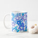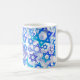 Mug de fêtes de PixDezines avec flocons de neige et étoiles de David bleues, fond DIY. Copyright © 2008-2018 PixDezines™. Tous droits réservés.