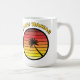 Silhouette d'un palmier tropical contre coucher de soleil à l'allure rétro. Vous pouvez customiser les couleurs et personnaliser le texte "Oahu Hawaii" avec ce modèle.