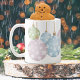 This mug feh ree non-traditional color Christmas ornaments in pastel green, pink, and blue with white stars. The ornaments in different sizes encircle the mug over a white background.