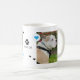 Tasse à café moderne avec 2 de vos photos préférées, cœurs décoratifs, empreinte de patte avec le nom de votre chien.