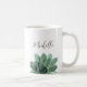 Tasse à café botanique moderne, avec un design vert succulent sur un arrière - plan blanc. Avec un élégant script noir, vous pouvez personnaliser avec vos propres informations. Cet article est idéal pour votre boisson chaude préférée ou comme cadeau pour quelqu'un de spécial.