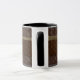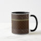 Un monde personnalisé moderne meilleur designer Maman café Mug. Customisez et personnalisez complètement les mots. damier en cuir Brown et bronzé, avec séparateur zippé en or. WB (World's Best) encerclé en or. Design tendance