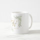 Tasse élégante à monogramme floral à feuilles de eucalyptus aquarelle avec une initiale de monogramme doré. Conçue par Thisisnotme©