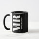 Cool mug noir et blanc avec vos initiales et votre nom, et avec votre propre photo spéciale dans un cercle