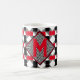 Quand le classique vintage rétro inspire l'art moderne, ce motif carré géométrique rouge et noir s'inspire du style vintage plaid et chekerboard de bufflonne, avec une touche memphis géométrique abstraite dans un motif esthétique pour former un motif décoratif élégant et élégant composé d'un bloc de couleur géométrique en rouge et noir et blanc pour donner une décoration agréable sur une tasse de café. Ce design peut être facilement personnalisé avec monogramme personnalisé Inital pour être le meilleur cadeau d'anniversaire et vacances unique présent pour noël au nouveau fan motif rouge et noir pour un art décoratif.