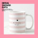Cette belle tasse est le cadeau parfait pour la douche nuptiale! Il présente des rayures rose vif et un petit coeur d'amour, avec le nom marié de la future épouse et l'année de leur mariage. Avec son design élégant et sa touche personnalisée, cette tasse deviendra un souvenir précieux pour le couple heureux. Qu'ils l'utilisent pour déguster leur café du matin ou comme pièce décorative, cette tasse est une belle façon de célébrer leur journée spéciale.