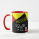 Un arrière - plan rouge, des rectangles noirs et jaunes. Texte pointé de couleurs blanches, jaunes et noires Eclipse solaire moderniste. De l'autre côté, c'est l'explication de l'éclipse solaire. Eclipse est la bataille épique entre soleil et lune ? ? ? ? UGH, Eh Bien... Que suis-je en train de boire ? Une tasse à café si avant-gardiste unique (unicité garantie !) drôle pour quiconque pour célébrer la Grande Américaine Total Éclipse Solaire. Personnalisable . Vous pouvez vraiment tout changer. Il suffit d'utiliser le bouton Personnaliser et d'ajouter ou de supprimer tout ce que vous voulez. Soyez créatifs et pressés, les éclipses solaires n'attendent personne.