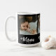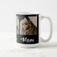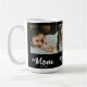 Custom Mom Established Modern Bold Script Black 3 Photo Coffee Mug with White Text on a Black Background. Replace the photos with your own and change the years to the year(s) you became a mom (add multiple years if you have more than one child). You can change "mom" to mum or mama if needed (leave the little square in place).