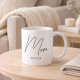 Mom Established New Mom Mug - Minimal Elegant Black Script Mom Typography - Add your custom "Est" established year date when your first child was born. Add additional years for each child.