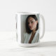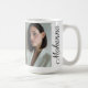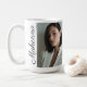 La tasse à café Moment vertical avec nom comporte une image portrait pleine longueur associée à un nom de script vertical le long d'un côté. Avec une base blanche et du texte noir, la mise en page éditoriale épurée crée un design moderne et mémorable inspiré de l'esthétique des magazines.