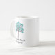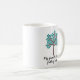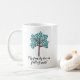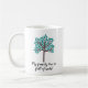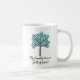Cette tasse comporte une conception de généalogie avec un arbre avec le feuille bleu et la légende "mon arbre généalogique est pleine des écrous".