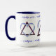 Cette tasse en céramique de style "ringer" est délicieusement différente - féminine avec ou sans être trop girlie, avec le design numérique original de Leslie Sigal Javorek d'une Etoile de David composée d'un triangle couleur prune et entrelacé coeur bleu perlonnet.