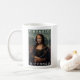 Mona Lisa Fibonacci Spiral Gold Ratio Texte Personnalisé Café Mug. Retour écriture : "L'art est de Dieu dans une séquence simple" et écriture partie de la séquence Fibonacci : "0, 1, 1, 2, 3, 5, 8, 13, 21, 34, 55, 89, 144..."