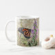 Dessin au crayon de couleur du papillon Monarque sur les fleurs violettes