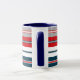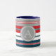 Design à thème nautique avec décoration monographique en forme ronde sur arrière - plan rayé bleu, blanc, rouge et gris