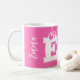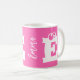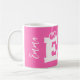 Fun bold typography, trendy handwritten script name, and monogram initial letter hot pink magenta and white custom coffee mug. +++++++++++++ Easy to personalize with your name and initial. It can be a cute, funny gift for her - girl, teen, or young woman on her birthday, Christmas, or any other occasion.