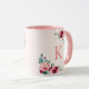Mug Monogramme Aquarelle Boho rose Bourgogne Rose Fleu