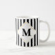 Rayures noires et blanches avec un diamant blanc avec l'équilibre d'or et un monogramme personnalisable.