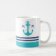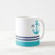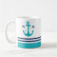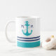 Bandes marines bleu marine et bleu ciel avec ancre et monogramme.