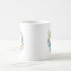 Tasse de café bleue de monogramme d'or de mer et de plage comportant des hippocampes, des étoiles de mer, des coquillages et des récifs coraliens. Pour une personnalisation plus avancée de cette conception, cliquez sur svp le bouton de "personnaliser" ci-dessus ! Les articles assortis sont également disponibles.
