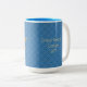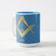 Carré or élégant et boussole Symbole maçonnique personnalisé tasse à café avec un arrière - plan bleu plaid.