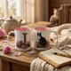 Mug Monogramme Chat Smoking Floral Vintage