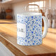 Mug Monogramme Cobalt Blue Flowers & Motif Feuille 11o
