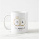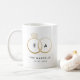 Un monogramme moderne obtient du glam avec des anneaux de mariage en or entrelacés avec un texte facile à personnaliser pour vos initiales, nom marié et date mariage sur cette tasse blanche classique en faisant une maison amusante réchauffer ou un cadeau d'anniversaire pour les jeunes mariés.