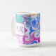 Mug Monogramme d'art fluvial bleu, orange, violet et T