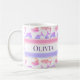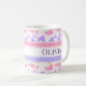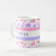 Cute rose, violet et jaune personnalisé avec tasse de café de nom avec baleines douces nageant dessus. Un cadeau d'anniversaire parfait, le chauffage au foyer, cadeau de Noël.