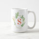 Cadre géométrique vert et corail Floral Monogram Coffee Mug C'est le motif tendance parfait pour votre style quotidien. Cette aquarelle présente un cadre géométrique fleuri vert. Personnalisez l'intérieur initial du cadre floral. Visitez notre boutique pour la coordination des accessoires.