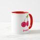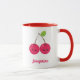 Cute et chic mug avec d'adorables cerises souriantes kawaii et un espace réservé texte modifiable pour votre nom ou texte personnalisé dans un script moderne et audacieux. Personnalisez facilement ce design pour qu'il corresponde à votre style en cliquant sur "Customiser" pour aller à l'outil de conception et ajouter votre propre texte ou vos détails personnalisés. Ce design sucré est un cadeau parfait pour les gourmands et les amateurs de fruits.