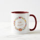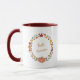 Une Mug avec une couronne d'automne et ses feuilles d'érables, de hêtres, de chênes et de noisettes, de champignons, de glands, de citrouilles, de châtaignes et de noix aux couleurs de l'automne. Il comprend également un texte personnalisable et une lettre monogrammée ! Parfait pour un cadeau à une petite amie ou un amoureux de la nature et de l'automne !