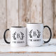 Tasse à café de ferme moderne personnalisée avec votre famille monogramme initial et nom dans un cadre de branche rustique. Utilisez les outils de conception pour ajouter votre propre texte et des photos pour créer un cadeau unique pour les jeunes mariés ou le ménage.