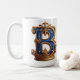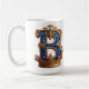 Un monogramme de lettre B bleu luxueux encadré par un travail de défilement doré complexe et une couronne royale, créant un emblème audacieux et haut de gamme idéal pour l'image de marque de luxe, les invitations et les thèmes de design classiques.