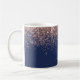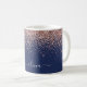 Rose Gold - Blush Pink et Navy Blue Sparkle Parties scintillant brossé Monogramme en métal Nom et première coupe de café ou de la Mug. Cela rend le cadeau parfait pour 16 ans, mariage, douche nuptiale, anniversaire, baby shower ou bachelorette pour quelqu'un qui aime le luxe glam et les styles chic.