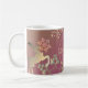 N'est-ce pas une douce tasse de vacances ? Mes flocons de neige originaux dans les tons terreux sur un arrière - plan de mousse rose et graphique de rennes, pour ce Noël festif !