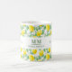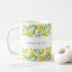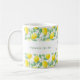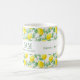 Une tasse décorée d'un motif citron. Texte : Pressez le jour. Personnalisez et ajoutez vos initiales et votre nom de monogramme.