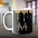 Mug monogramme élégant avec gouttes de paillettes dorées. Conçu par Thisisnotme©