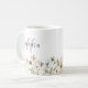 Mug de café Monogrammé Floral. Cette élégante tasse monogrammée de fleur sauvage lunaire est ornée d'une belle aquarelle peinte à la main rose vif, bleu poussiéreux et de fleurs pressées vert sauge avec noir et rose. Rechercher les éléments correspondants dans les invitations de mariage Fleur sauvage | Collection de fleurs pressées.