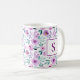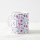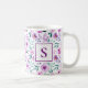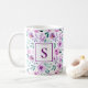 Tasse à café monogramme floral violet girly mignon . Ce design de motif féminin moderne et tendance présente de jolies roses aquarelles violettes. Personnalisez avec votre initiale de monogramme personnalisée.