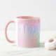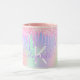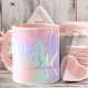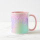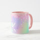 Un arrière - plan holographique branché aux couleurs pastel unicorne et arc-en-ciel rose, violet, or rose, vert menthe. Décoré avec des gouttes de parties scintillant en or rose, rose et violet. Personnalisez et ajoutez vos initiales et votre nom de monogramme. Lettres violettes et blanches. Le nom est écrit avec un script de style moderne écrit à la main avec des swashes. Pour que les swashes ne suppriment que le nom de l'échantillon, laissez les espaces ou émoticônes devant et après le nom. Un peu de glamour quotidien pour égayer votre journée !
