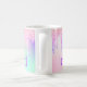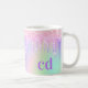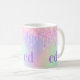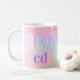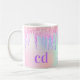 Un arrière - plan holographique branché aux couleurs pastel unicorne et arc-en-ciel rose, violet, or rose, vert menthe. Décoré avec des gouttes de parties scintillant en or rose, rose et violet. Personnalisez et ajoutez vos initiales de monogramme x3. Lettres violettes et audacieuses. Un peu de glamour quotidien pour égayer votre journée !