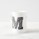Mug monogrammé avec la lettre "M" en noir.