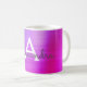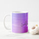 Monogramme en acier inoxydable violet Faux Nom et première tasse de café. La tasse à café est le cadeau idéal pour les amateurs de design métallique de luxe.