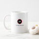 Ajoutez votre propre nom, marque ou tout autre mot spécial aux modèles pour créer une tasse blanche simple et élégante, avec votre nom imprimé dans un style de police sans serif, et avec votre lettre initiale dans un cercle noir